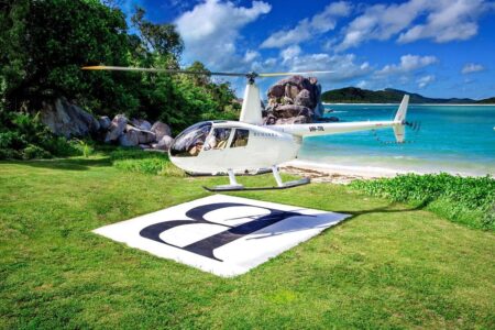リゾート専用のヘリコプターでケアンズから、またはミッションビーチからヘリコプターまたは、船・
